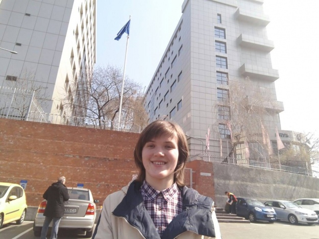 Я завжди хотіла дізнатися, де знаходиться Предствавництво ЄС в Україні, і я дізналася, навіть зробила фото на фоні. Мені ніхто не заважає бути європейкою, я сама визначаю, як мені пізнати Європу і світ, якими кроками рухатися, щоб побачити ті чи інші культурні пам'ятки.
