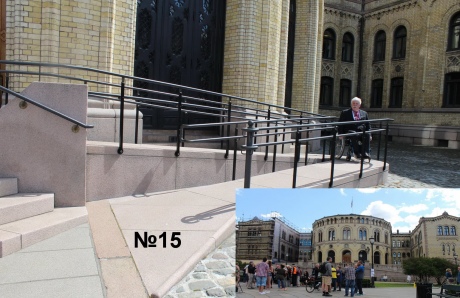 Або, наприклад, фундаментальний пандус на головному фасаді стортингу (парламенту Норвегії) в Осло не псує загального вигляду цієї знакової будівлі.