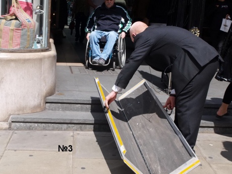 Той швидко заскочив до дверей першого від виходу на вулицю магазинчику та за хвильку з’явився перед нами, тримаючи в руках… розкладний пандус.