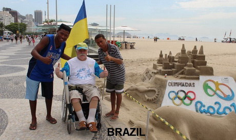 5. І наостанок. Коли я їхав з українським прапором пляжем Копакабана у Ріо-де-Жанейро, мене запросили зупинитися біля піщаної скульптури її автори – молоді хлопці.