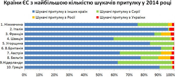 І хоча найбільшу частку потенційних біженців торік склали громадяни Сирії, Афганістану, Косово та Еритреї, увага європейців не оминула і громадян України.