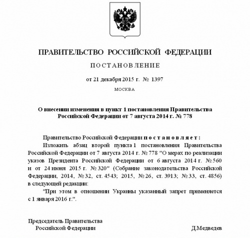 Однак прямо під час тристоронніх консультацій прийшла чергова новина з Росії - прем'єр-міністр Дмитро Медведєв підписав постанову про застосування контрсанкцій щодо українського харчового імпорту.