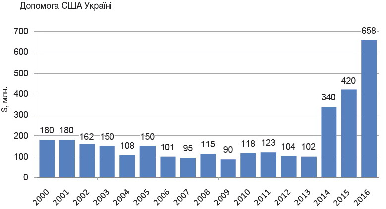Анексія Криму і конфлікт на сході України спонукали Сполучені Штати значно збільшити військову допомогу Україні.