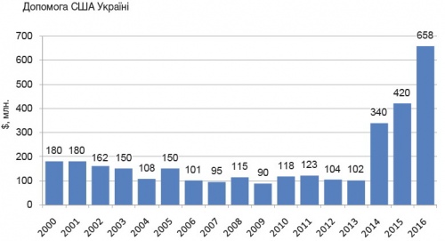 Виходячи з планових показників на 2016 рік, Україна увійшла до переліку найбільших отримувачів американської допомоги.