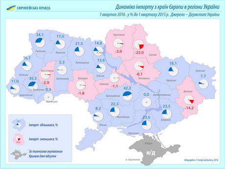 За підсумками першого кварталу 2016 року зростання експорту в ЄС фіксується в 11 областях. З них 9 показують збільшення у понад 10%.