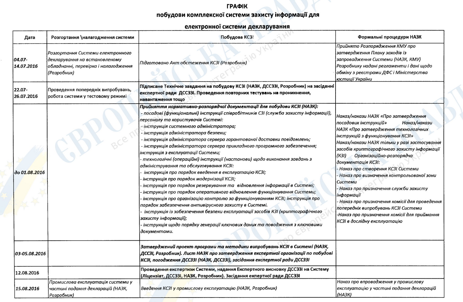 Євдоченко, мабуть, не думав, що в пресу потрапить документ, який він особисто погодив більше місяця тому. 5 липня керівник ДССЗЗІ надіслав до НАЗК лист, де йдеться, що служба "погоджує без зауважень графік побудови комплексної системи захисту інформації". За цим документом, сертифікація мала відбутися між 5 та 12 серпня.