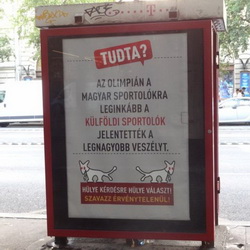 | Пародія на антимігрантську пропаганду: "Чи знаєте ви, що найбільша загроза угорським спортсменам під час Олімпіади була від іноземних конкурентів?" |