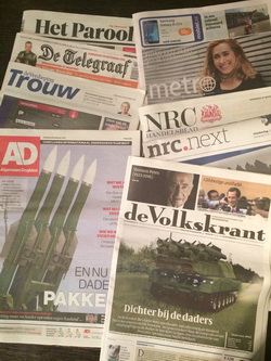 Заголовки: "Те, що ми всі знали: МН17 збила ракета, випущена з БУК", "Що відомо напевно - це те, що ракета прибула з Росії", "Хто в центрі уваги: дослідження включає близько 100 підозрюваних", "Лишилось схопити злочинців!", "Уряд має діяти активніше стосовно Росії", "Чому б Рютте не виступити проти Путіна", "Сумнівів немає: ракета з Росії","Рютте не поспішає викликати Росію на ринг", "Обвинуваченню знадобиться щонайменше 10 років"