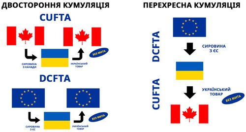 Кумуляція у рамках вільної торгівлі ЄС–Україна–Канада допоможе налагодити зв'язок між трьома незалежними угодами про вільну торгівлю (DCFTA, CUFTA, CETA), поглибити рівень торгового та економічного співробітництва України з Канадою та ЄС, а також сприяти подальшій інтеграції України у глобальні ланцюжки доданої вартості.