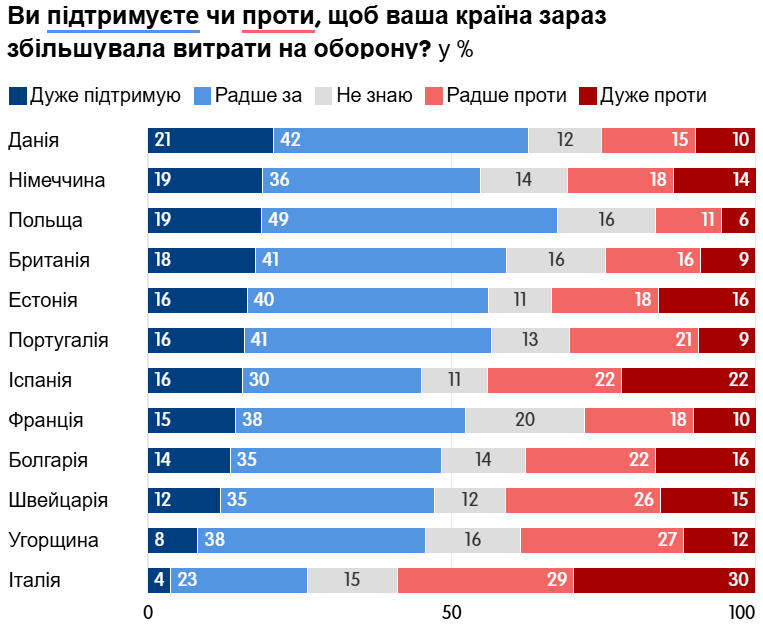 Зі зростанням оборонних витрат – картина краща, але теж не ідеальна. Тут у багатьох державах є абсолютна більшість за, але не усюди.