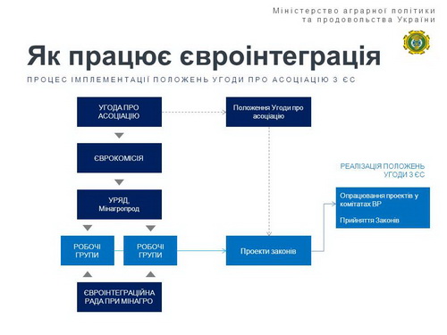 Це процес, в якому задіяні Єврокомісія, профільні асоціації та Міністерство аграрної політики як ключовий координаційний центр євроінтеграції.