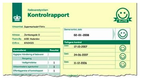 Згідно з данським законом, інспектор за результатами перевірки закладу видає одну з 5 видів наліпок, яку власник зобов’язаний наклеїти біля входу.