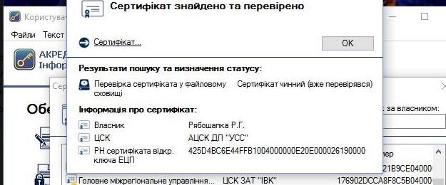 В коментарях до цього посту декілька різних фахівців підтвердили, що цей сертифікат ключа засвідчений (підписаний) офіційним ключем АЦСК ДП УСС, а відтак є чинним. Про тестовий ключ вже не йдеться: в скіншотах до цього посту наведено вигляд тестового сертифікату ключа від АЦСК ДП УСС.