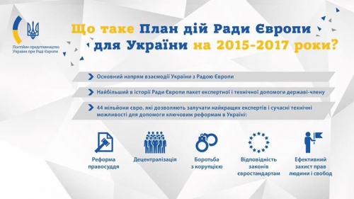 План дій РЄ для України на 2015-2017 роки є найбільшим в історії організації пакетом експертної та технічної допомоги державі-члену. І цим вже багато сказано. Судова реформа, створення антикорупційних органів (НАБУ, САП, НАЗК) та багато чого іншого стало реальністю в Україні завдяки Плану дій, який протягом першого ж року існування був забезпечений грошима на 60%.