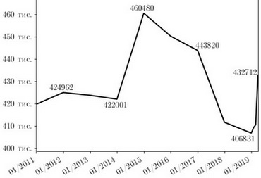 Статистику про кількість виборців у різних регіонах України та за кордоном регулярно публікує Державний реєстр виборців. На графіку видно, як змінювалася реальна кількість виборців на закордонному виборчому окрузі за останні 8 років.