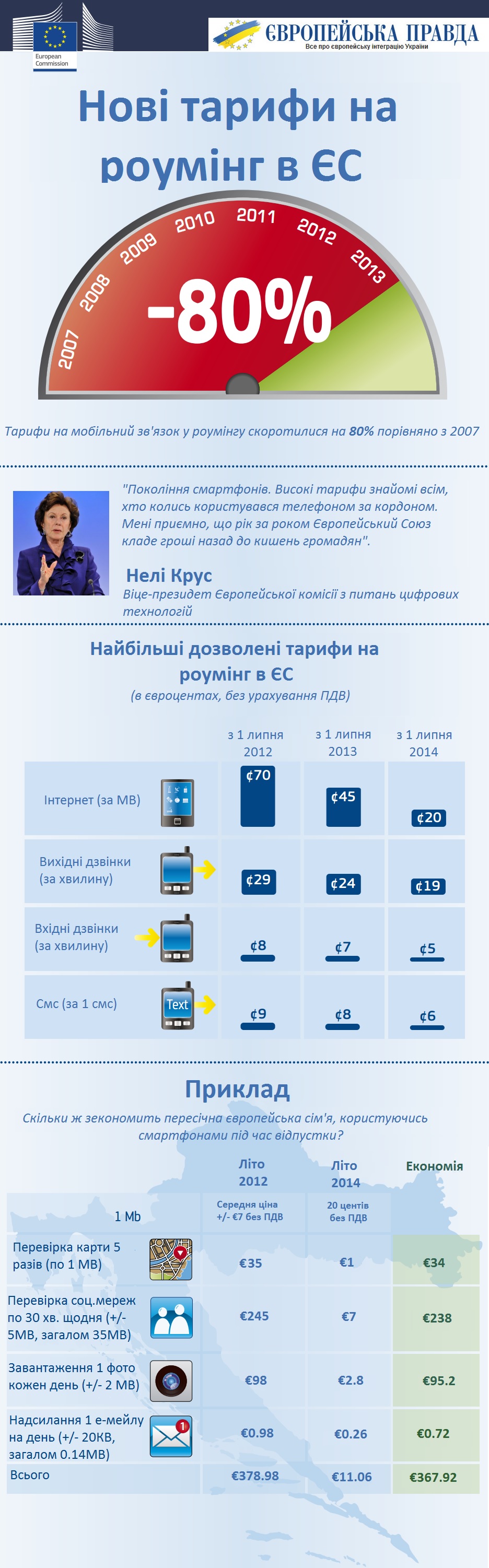 Брюссель почав війну з платою за роумінг ще 2007 року. За шість років тарифи вдалося знизити на понад 80%. Наступного року їх знову зменшать, якщо не скасують зовсім. Саме цього прагне Єврокомісія.