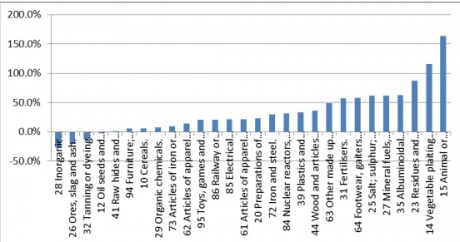 Зокрема, експорт продукції тваринництва зріс більше ніж на 150%, овочів та продукції рослинництва - більше ніж на 100%.