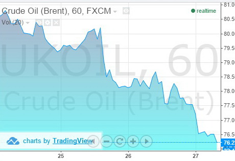 Інтерфакс, цитуючи повідомлення агентства, зазначає, що січневі ф'ючерси на нафту Brent на лондонській біржі ICE Futures за ніч знизилися в ціні на $1,28 порівняно з попереднім ранком – до $76,47 за барель станом на 8.00 за київським часом.