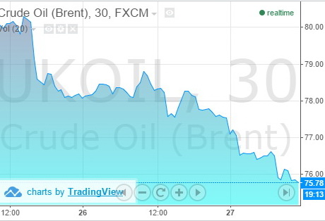 Від ранку зниження ціни продовжилося, та невдовзі вона пробила "психологічний рівень" в $76.