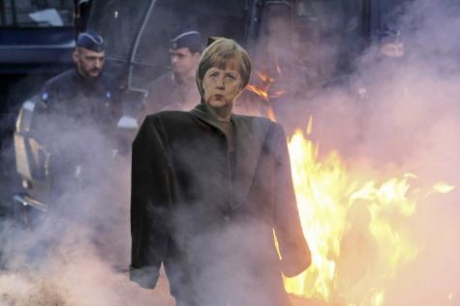 | Фермери спалили опудало Меркель (фото - Le Soir) |