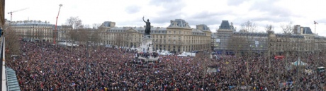 Сотні тисяч людей зібралися на площі Республіки в Парижі для того, щоб разом з 50 світовими лідерами взяти участь у марші солідарності, присвяченому жертвам терактів у Франції 7 і 9 січня.