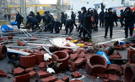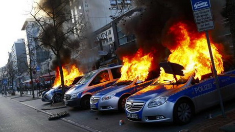 Десятки людей постраждали близько 350 осіб заарештовано сьогодні у Франкфурті в ході зіткнень протестуючих з поліцією.