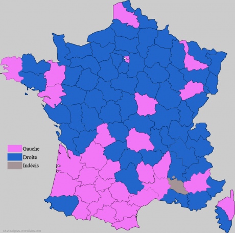 Як повідомляється, партія "Союз за народний рух" Ніколя Саркозі здобула перемогу в 66 департаментів (проти 41 зараз), Соціалістичній партії, очолюваній президентом країни Франсуа Олландом, дісталось 30 департаментів (проти 61 зараз).