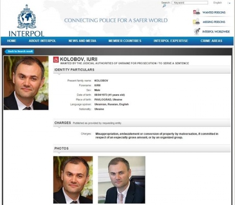 Згідно з даними Інтерполу, Колобову інкримінують привласнення, розтрату майна або заволодіння ним шляхом зловживання службовим становищем.