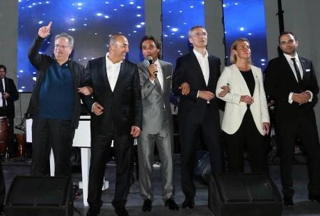 Повідомляється, що офіційна вечеря міністерської зустрічі проходила із музикальним супроводом місцевої групи Enbe Orchestra. В якийсь момент турецький міністр Мевлют Чавушоглу (як повідомляють ЗМІ – несподівано для присутніх) піднявся на сцену та запросив інших заспівати з ним "пісню миру".