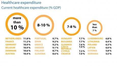 Зокрема, Нідерланди очолюють рейтинг з огляду на витрати на охорону здоров'я з розрахунку у відсотках ВВП - 11,8%.