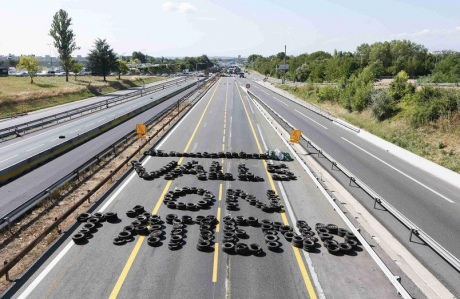 На одній з трас протестувальники виклали з допомогою шин слова з закликом до прем'єра "Вальс, ми чекаємо на тебе".