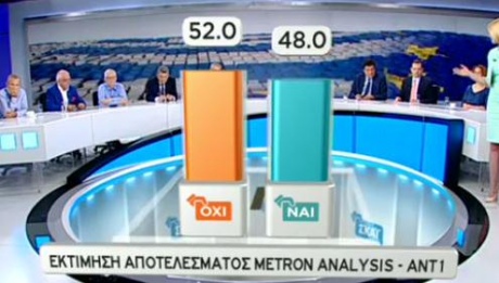 Згідно екзит-полу, проведерному грецьким каналом Skai TV, 52% греків проголосували проти програми економії, підтримавши тим самим чинний уряд.