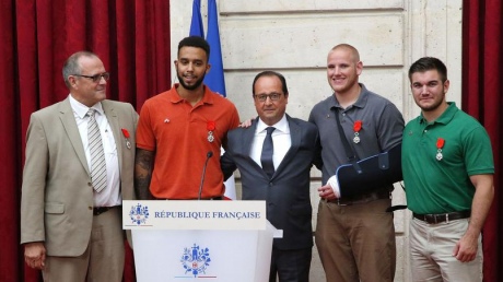 | Олланд нагороджує пасажирів, що врятували потяг від терориста (фото - Le Figaro) |