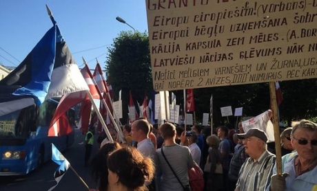 Близько тисячі осіб зібрались у Ризі на акцію протесту, спрямовану проти прийому біженців в Латвії.