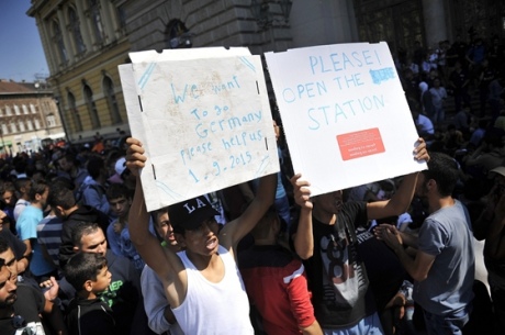 Сотні розлючених мігрантів провели демонстрацію біля залізничного вокзалу Будапешта Келеті, вимагаючи пропустити їх до Німеччини.
