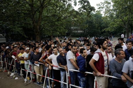 | Черги біженців вишикувалися перед вокзалом (фото 444.hu) |