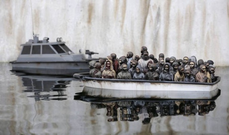 Зокрема, відвідувачі могли бачити композиції з човнами, заповненими біженцями.