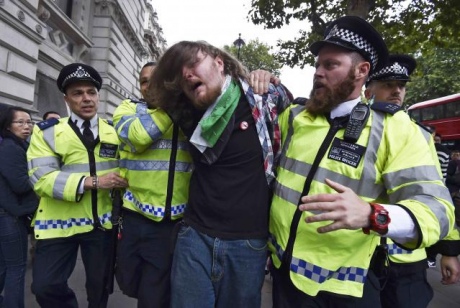 Згідно з інформацією, між протестуючими та поліцією спалахнули незначні сутички після того, як перші перекрили головну дорогу поблизу резиденції британського прем'єр-міністра Девіда Кемерона.