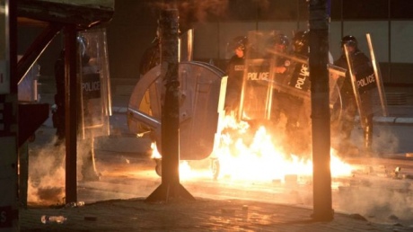 Повідомляється, що близько 200 протестувальників вигукували ім’я Курті і кидали в поліцію пляшки з запальною сумішшю і каміння.