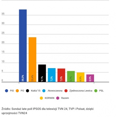 Також до парламенту потрапляють новостворена партія Новочесна з 7,2% та Польська селянська партія з 5,7%.
