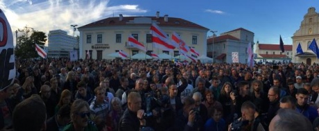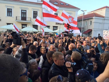 Серед пікетувальників – представники опозиційних партій та громадських організацій. Люди принесли в центр міста плакати, прапори Білорусі та Євросоюзу. На акцію зібралися близько 500 осіб.