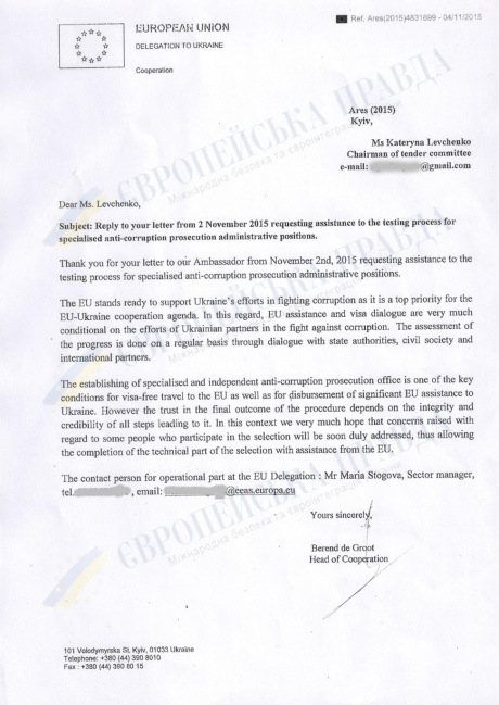 Представництво Європейського союзу повідомило українську владу, а також комісію з відбору кандидатів на посаду антикорупційного прокурора, про те, що ЄС втратив довіру до процесу створення Спеціалізованої антикорупційної прокуратури й наразі утримується від його фінансування.