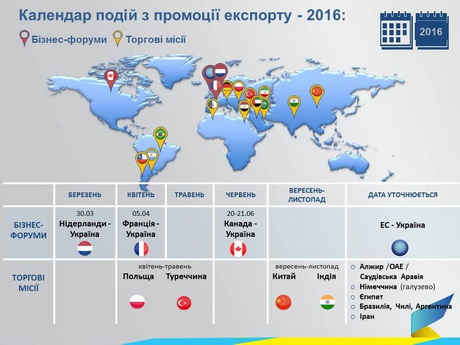 Протягом першого півріччя Кабмін проведе бізнес-форуми для презентації інвестиційного та експортного потенціалу України у Нідерландах, Франції та Канаді.