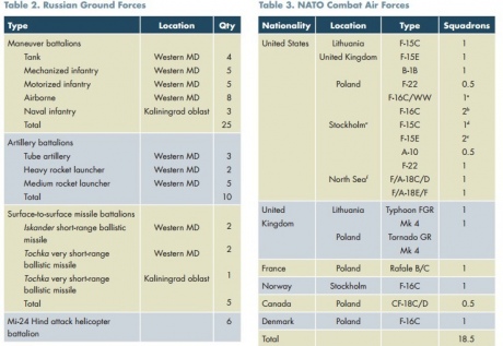 | наземні сили РФ поблизу країн Балтії (таблиця 2) та повітряні сили НАТО у Балтиці (таблиця 3) |