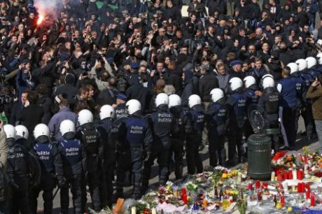 Щонайменше 450 одягнених у чорне хуліганів порушили спокій мирного зібрання на площі Біржі у Брюсселі, де відбувалося стихійне вшанування пам'яті загиблих у терактах.