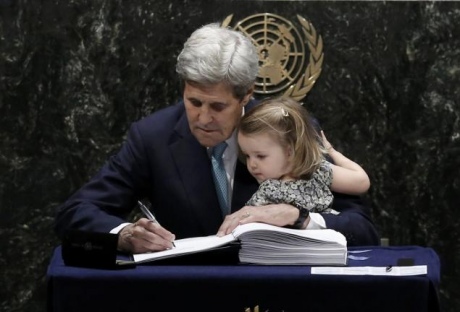 Ратифікувати угоду в цьому році обіцяють і США, які після Китаю роблять найбільше викидів. Слід зазначити, що держсекретар Джон Керрі поставив свій підпис під текстом угоди разом зі своєю онукою.