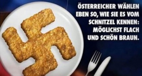 Після першого туру виборів президента Австрії, який виграв кандидат ультраправої партії Норберт Хофер, 35-річний продюсер німецького телешоу на каналі ZDF опублікував знімок шніцеля у формі свастики на сторінці програми у Facebook