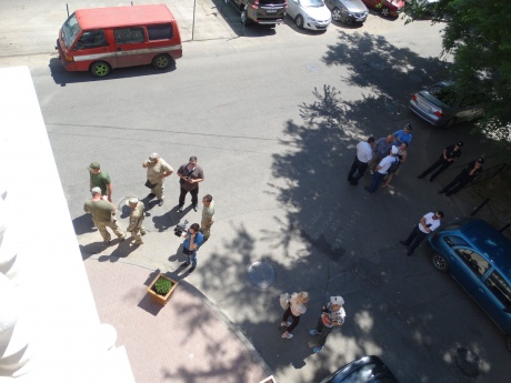 "Коли ми спустилися на сніданок, вони почали на нас кричати, що нас не випустять з готелю, що люди, з якими ми хочемо зустрітися, це сепаратисти і посланці Москви. Ми подзвонили в поліцію, але поки поліція їх звідси не прибрала. Ми весь час заблоковані в готелі, не відпустили навіть в магазин, щоб ми могли собі щось купити поїсти", - додав він.