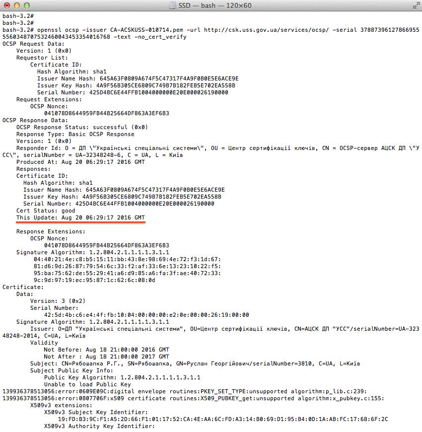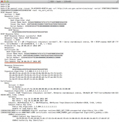 Представники експертної групи, яка опікується питаннями цифрового підпису, підтвердили, що ключ виданий державним підприємством "Українські спеціальні системи", а також, що він не має статусу тестового.