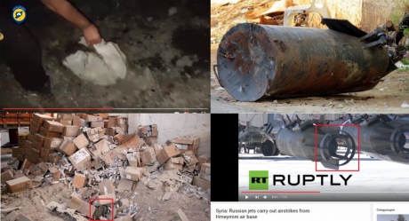 На фото та відео з місця події також видно шматок металу, що нагадує кришку бочкової бомби, а також, швидше за все, хвіст осколково-фугасної бомби ОФАБ-250-270, яка широко використовується російськими ВПС в Сирії.